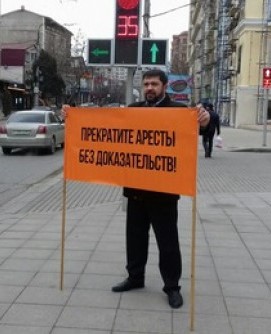 Aktivistler, "Çernovik" gazetesi çalışanı Abdulmumin Gadjiev'i desteklemek için Mahaçkale'de düzenli olarak tek kişilik protesto gösterileri düzenliyorlar.